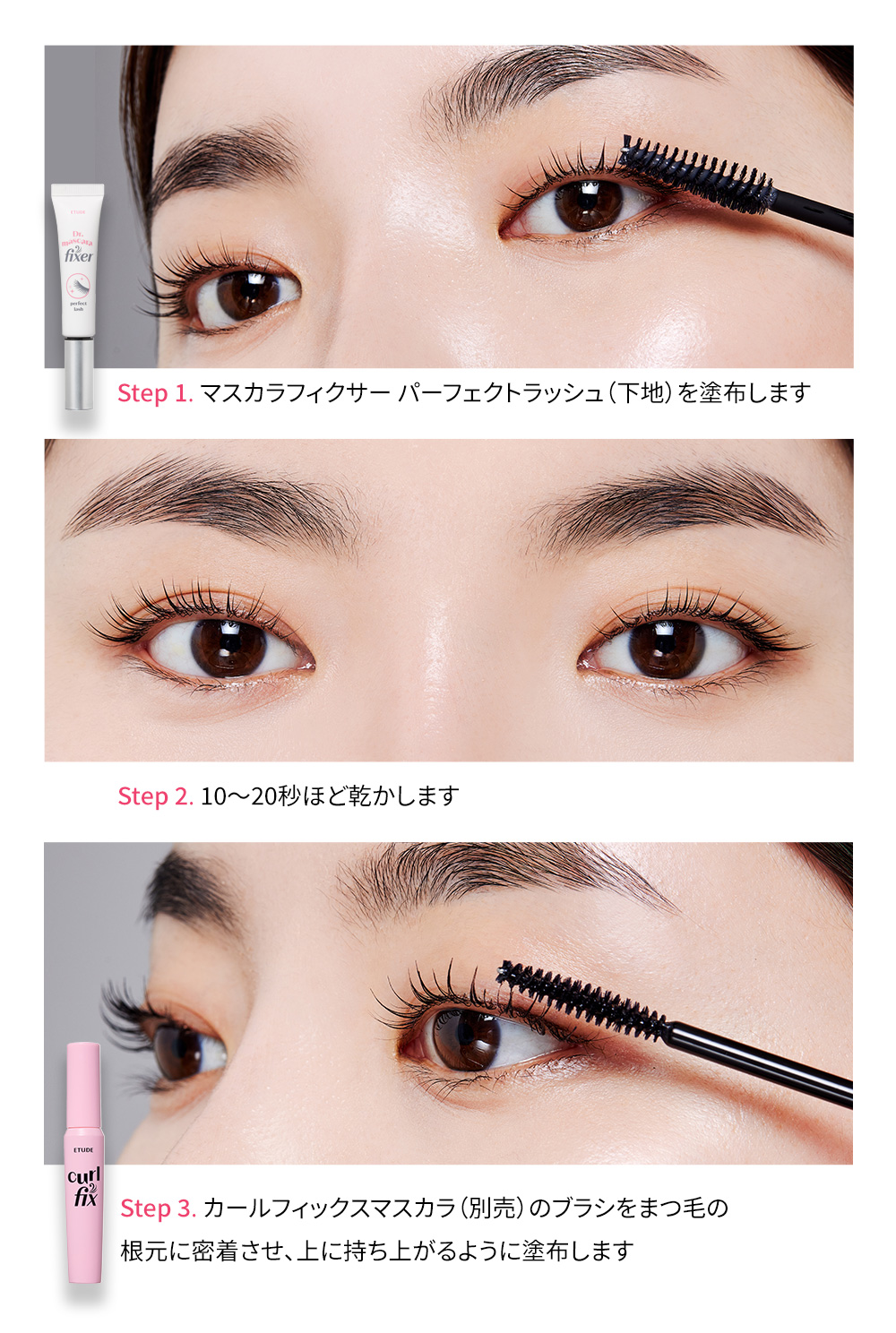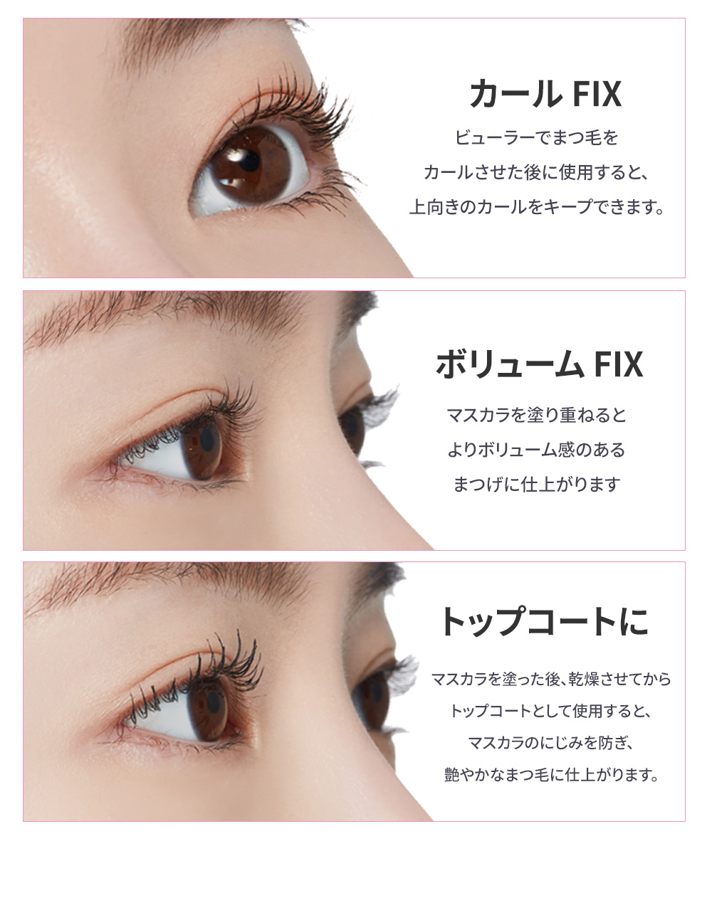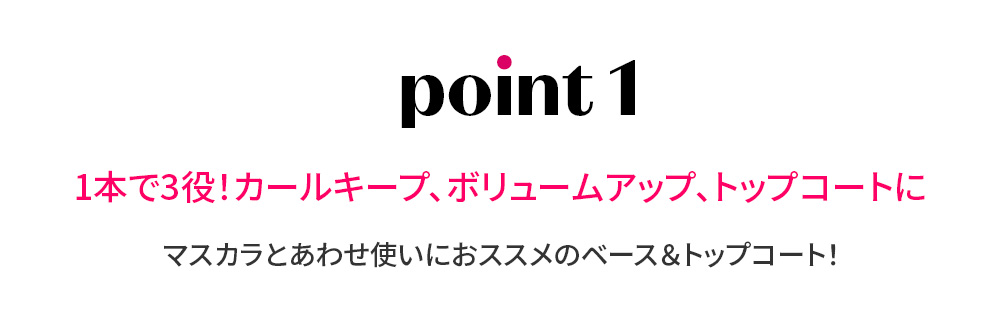 1本で、カールキープ、ボリュームアップ、トップコートの3役!マスカラとあわせ使いにおススメのベース&トップコート!