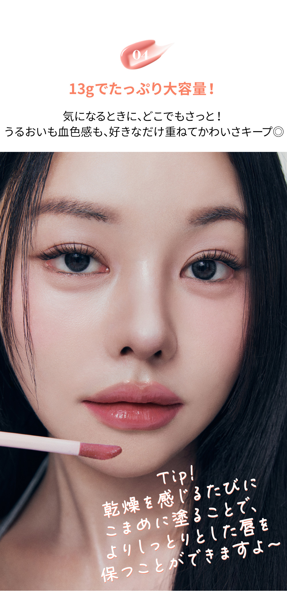 チップに適量をとり、唇の中心から全体へ塗布します。