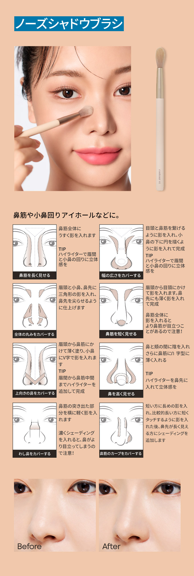 目元・鼻筋・フェイスラインに合わせたブラシサイズと高級感のあるパッケージデザイン。