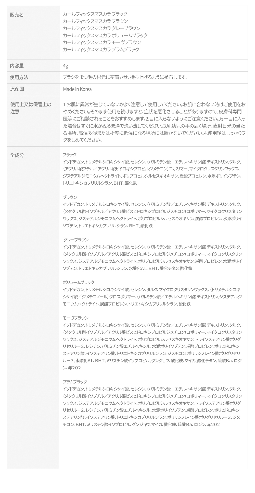 各カラーバリエーションにより成分が異なります。詳細は商品パッケージをご確認ください。