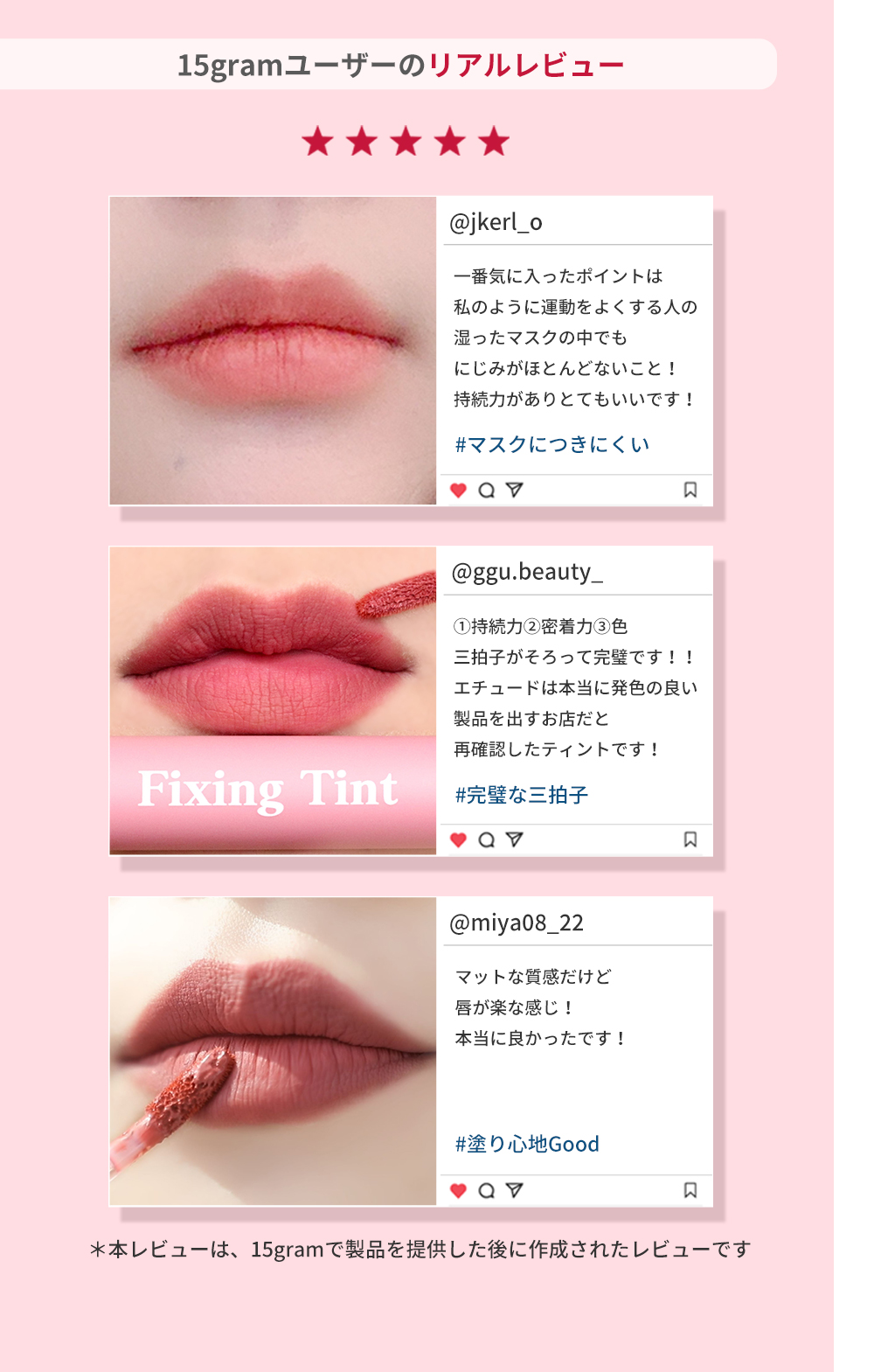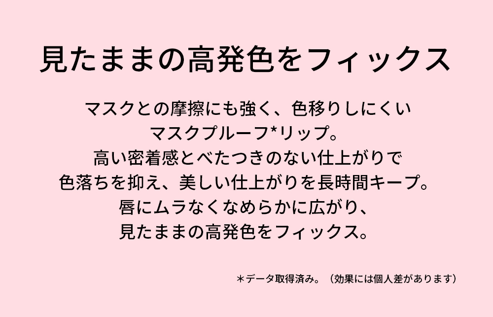 見たままの高発色&うるおいを感じさせるしっとりクリーミーな質感。カラバリ豊富なリップティント