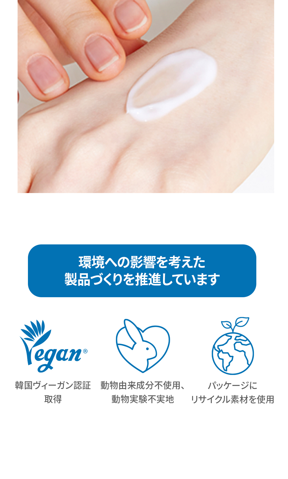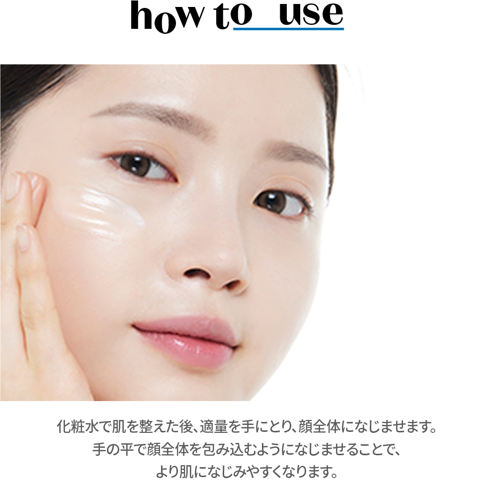 化粧水で肌を整えた後、適量を手にとり、顔全体になじませます。