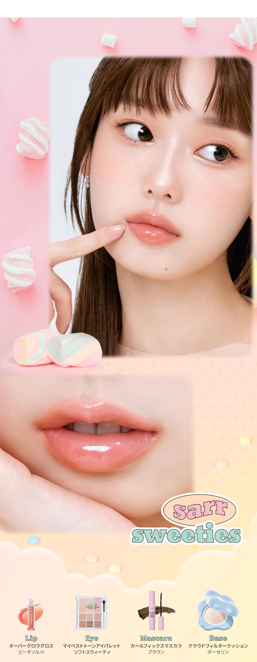 ダイマージリノール酸ダイマージリノレイルビス(ベヘニル/イソステアリル/フィトステリル)、水添ポリイソブテン、リンゴ酸ジイソステアリル、イソノナン酸イソノニル、トリイソステアリン酸ポリグリセリル-2、ジメチルシリル化シリカ、合成ワックス、ポリヒドロキシステアリン酸、(カプリル/カプリン酸)グリセリズ、マイクロクリスタリンワックス、(エチレン/プロピレン)コポリマー、シリル化シリカ、香料、酸化チタン、酸化鉄、硫酸Ba、赤202、黄5、黄4、青1