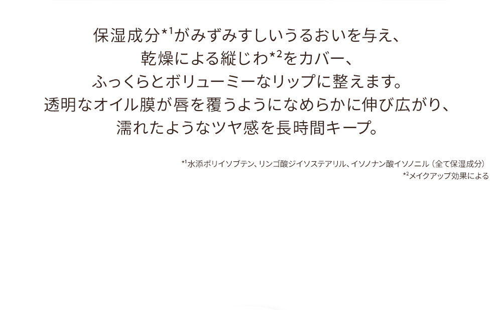 チップに適量をとり、唇の中心から全体へ塗布します。